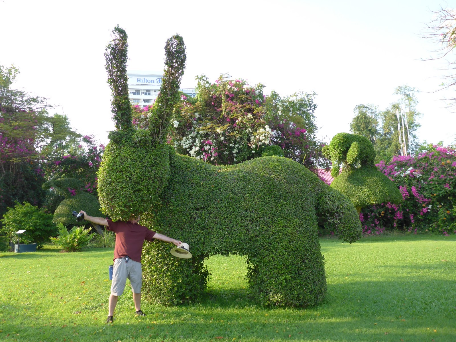 Whimsical animals will keep you company as you stroll through the topiary gardens.